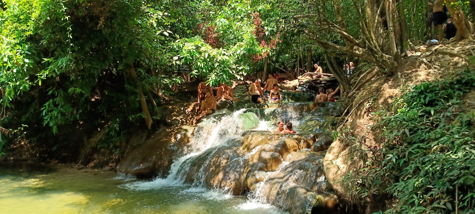The Hot Stream Waterfall, also known as Klong Thom Hot Springs, is a unique natural attraction in Krabi, Thailand. Located near the Emerald Pool, this waterfall features warm, mineral-rich waters that flow down a series of smooth rocks, creating natural pools where visitors can relax and soak.